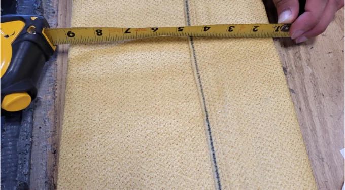 Measure from the B-binder to the last seam of the bag.